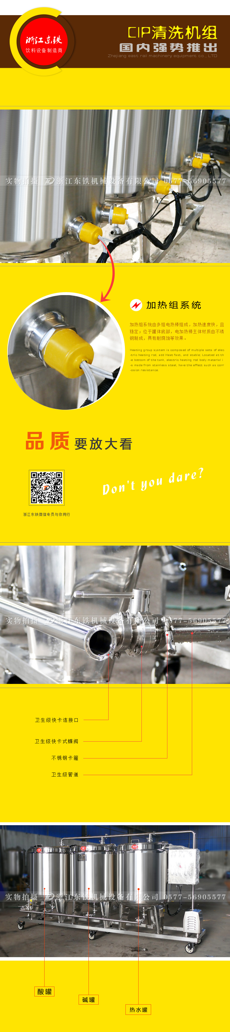 Re的一般標(biāo)準(zhǔn)為:從壁面流下的薄液,槽類Re>200,管類Re>3000,而Re>30000效果好。水的溶解作用:水為極性化合物,對(duì)油脂性污物幾乎無(wú)溶解作用,對(duì)碳水化合物、蛋白質(zhì)、低級(jí)脂肪酸有一定的溶解作用,對(duì)電解質(zhì)及有機(jī)或無(wú)機(jī)鹽的溶解作用較強(qiáng)。機(jī)械作用:由運(yùn)動(dòng)而產(chǎn)生的作用,如攪拌、噴射清洗液產(chǎn)生的壓力和摩擦力等。清洗效果的影響因素:設(shè)備污染程度、污染物性質(zhì)及產(chǎn)品生產(chǎn)工藝等是決定清洗效果的重要原因,如果清洗時(shí)不根據(jù)其特性來(lái)確定CIP的條件,很難達(dá)到理想的目的或因此導(dǎo)致清洗費(fèi)用過(guò)高等缺陷。清洗劑種類,截止2012年食品行業(yè)應(yīng)用的清洗劑種類很多,主要有酸堿類等,其中氫氧化鈉和硝酸應(yīng)用為廣泛。堿類洗滌劑對(duì)含蛋白質(zhì)較高的污物有很好的去除作用,但對(duì)食品橡膠墊圈等有一定腐蝕作用。酸類洗滌劑對(duì)堿性清洗劑不能去除的頑垢有較好效果,但對(duì)金屬有一定的腐蝕性,應(yīng)添加一些抗腐蝕劑或用清水沖洗干凈。清洗劑還有表面活性劑、螯合劑等,但只在特殊需要時(shí)才使用,如清洗用水硬度較高時(shí)可使用螯合劑去除金屬離子。清洗劑濃度提高清洗劑濃度時(shí),可適當(dāng)縮短清洗時(shí)間或彌補(bǔ)清洗溫度的不足。清洗劑濃度增高會(huì)造成清洗費(fèi)用的增加,而且濃度的增高并不一定能有效地提高清洗效果,因此廠家有必要根據(jù)實(shí)際情況確定合適的濃度。洗液溫度通常而言,溫度每升高10℃,化學(xué)反應(yīng)速度會(huì)提高1.5—2.0倍,清洗速度也相應(yīng)提高,清洗效果較好。清洗溫度一般不低于60℃。清洗時(shí)間受許多因素的影響,如清洗劑種類、濃度、清洗溫度、產(chǎn)品特性、生產(chǎn)管線布置以及設(shè)備設(shè)計(jì)等。清洗時(shí)間必須合適,太短不能對(duì)污物進(jìn)行有效去除,太長(zhǎng)則浪費(fèi)資源。