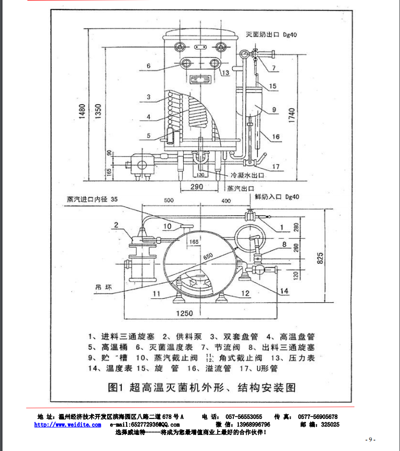 滅菌機(jī)與物料接觸部分,都采用不銹鋼制造,雙套盤管用專用機(jī)床加工,同心度高。內(nèi)表面光潔,從而使液料通過雙套盤管時(shí)形成均勻的液層,加熱十分均勻。
