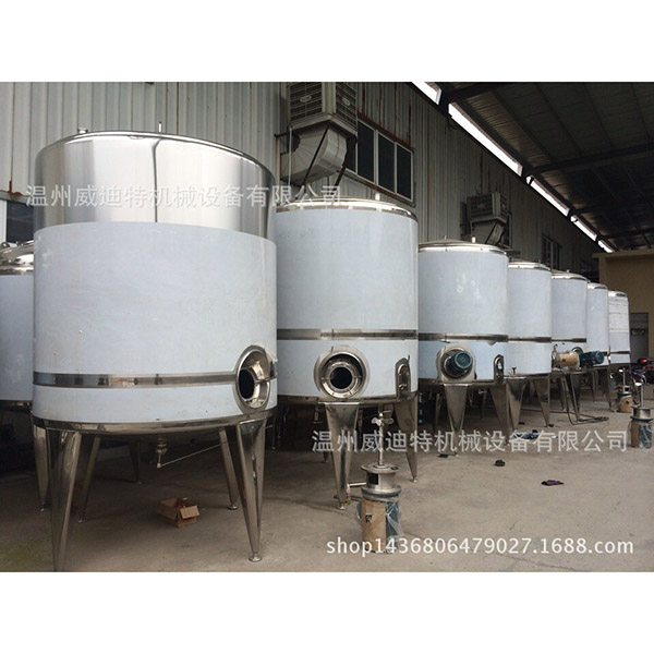 調(diào)配罐又名拌料缸、混料缸,有節(jié)能、耐腐蝕、生產(chǎn)能力強、清洗方便、結(jié)構(gòu)簡單等優(yōu)點,主要用于乳品和食糖及其它元素和各種藥物再配合后進行攪拌均勻作用,是乳品、飲料、制藥廠不可缺少的設(shè)備。采用材質(zhì)為SUS304或316不銹鋼。