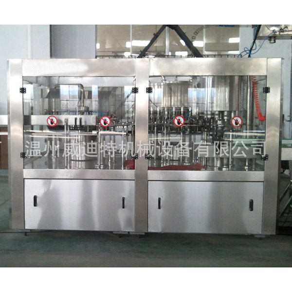 1、三合一灌裝機用于聚瓶含氣飲料的生產。