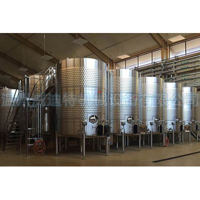 果酒發(fā)酵罐的結(jié)構(gòu)特點(diǎn):采用鏡面板套進(jìn)行冷卻,通過溫度控制探頭,液位控制探頭,制冷劑電磁閥,罐體計(jì)算機(jī)系統(tǒng)設(shè)置,根據(jù)發(fā)酵罐的容量不同而不同。設(shè)計(jì)冷卻區(qū)實(shí)現(xiàn)了發(fā)酵過程的自動(dòng)溫度控制,以快速,高效地完成罐中培養(yǎng)基的冷卻和控制。